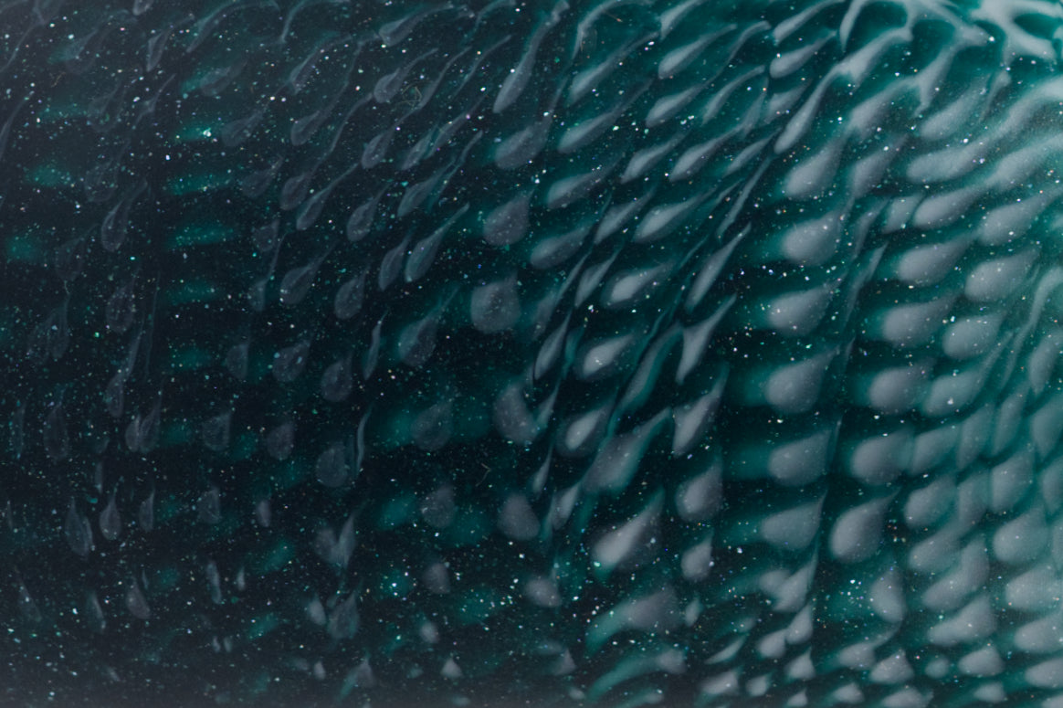 Shimmery mica poured in defined sections, with a wavy border between each.